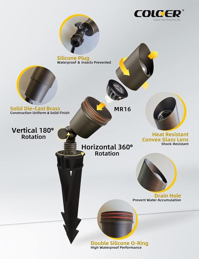 - Lifetime Warranty: The COLOER landscape spotlight uses a design with separate light fixture and bulb, which offers a longer lifespan compared to the non-detachable integrated design.You can replace the bulb without having to replace the entire fixture just because the bulb is broken.We offer a lifetime warranty on the brass light fixture and 5 years for the led bulb. We stand behind our product with our top-rated customer service. Please don't hesitate to contact us if you have any issues.