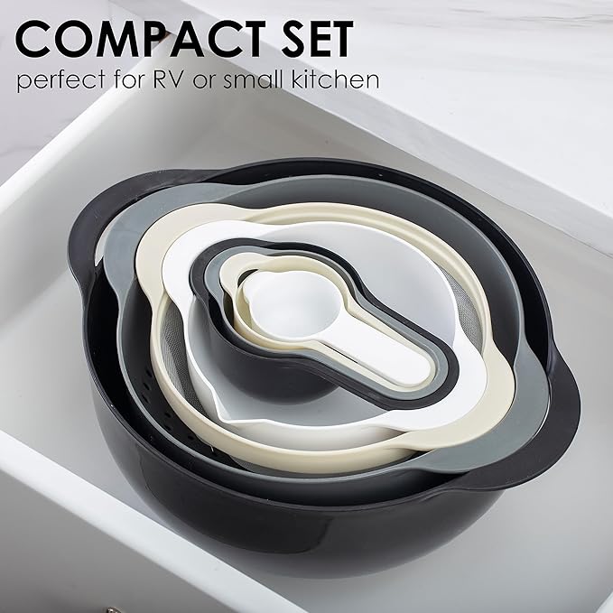 - Material & Care: Made of 100% polypropylene, this nesting bowl set is top rack dishwasher safe (except for sieve), extremely durable and 100% BPA free. Not microwave safe.