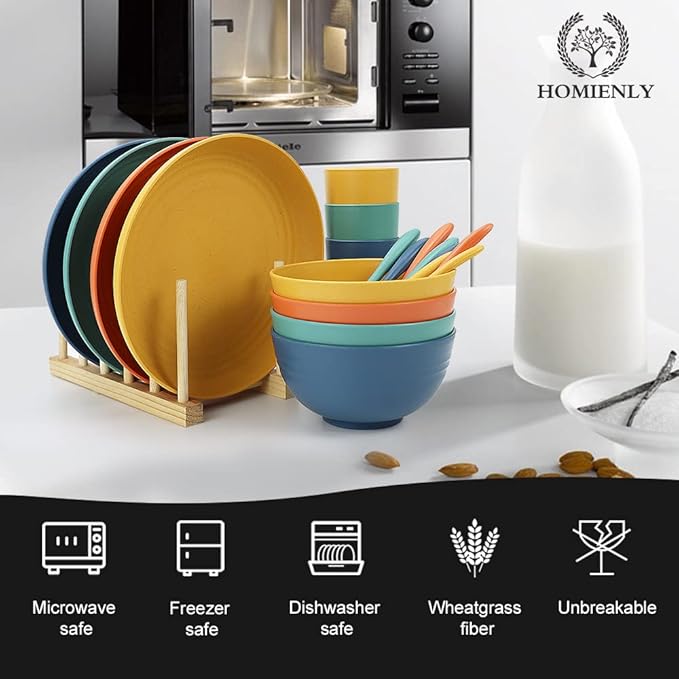 - PREMIUM MATERIALS, HEALTHY LIVING: Enjoy our premium wheat straw dish set, crafted from the high quality materials for a safe, non-toxic, and odorless dining experience. Free from harmful substances.These dinnerware set ensure your and your family's safety without compromising quality.