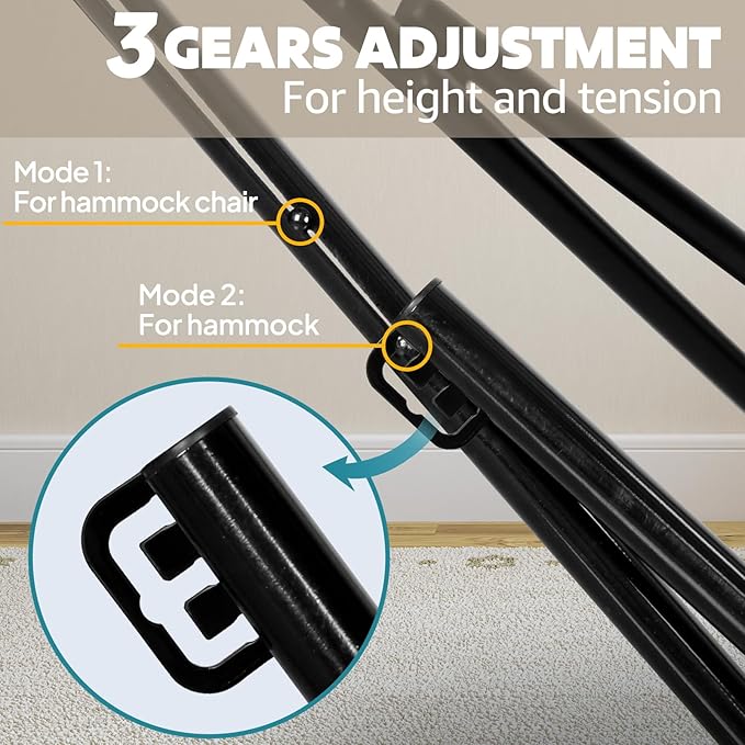 - Free Transformation and Sturdy: 2 in 1 adjutable hammock stand, it can be twisted easily from hammock stand to hammock chair stand.The heavy duty hammock stand is made from rust-resistant powder-coated steel The hammock stand is powder-coated which makes the steel rust-resistant and protected against wind and rain. There are also plastic feet on the bottom to prevent scratches on your deck.