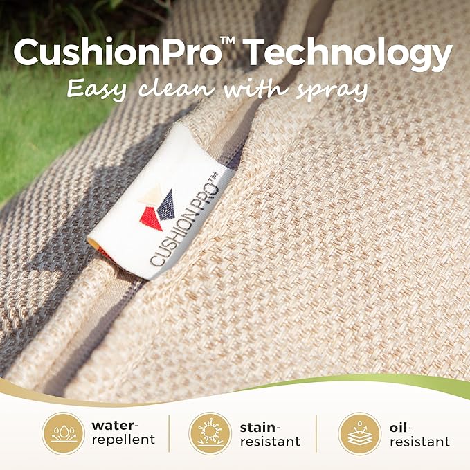 - 【INNOVATIVE CUSHIONPRO TECHNOLOGY】The patented CushionPro outdoor fabric provides advanced water-repellent, soil-release, and stain-resistant properties for easy maintenance. Simply using a sponge and cleaning spray keeps your outdoor furniture looking fresh and inviting