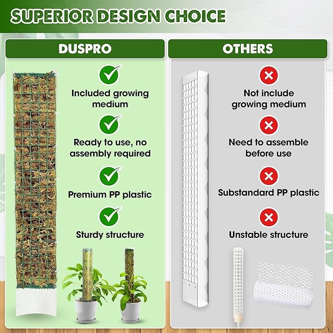 - 🌿✨DUSPRO’S QUALITY COMMITMENT: We ensure that our moss poles for potted plants monstera undergo strict quality control procedures and meet our high-quality requirements. However, if for any reason you are not fully satisfied, please feel free to contact us; our professional customer service staff will be delighted to provide you with a replacement or refund. Be the first one to own this unique item, and you won't be disappointed. Let's buy now!