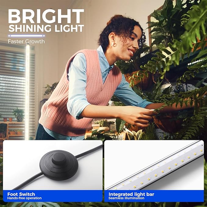- Simple and Quick Installation: Designed for convenience, our grow light can be effortlessly set up. Just connect the stand to the light, plug in the power, and switch it on