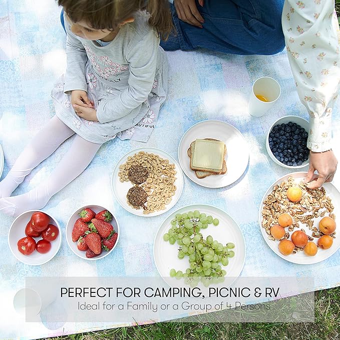 - Multipurpose Dinnerware - Our reusable dishes set for 8 are made for every occasion and will not only be great for home and kitchen use, but also convenient for an rv or camper, a picnic, BBQing, camping, work, school and much more. The unique design allows for easy compact storage as well. You can't go wrong with our wheatstraw dinnerware set.