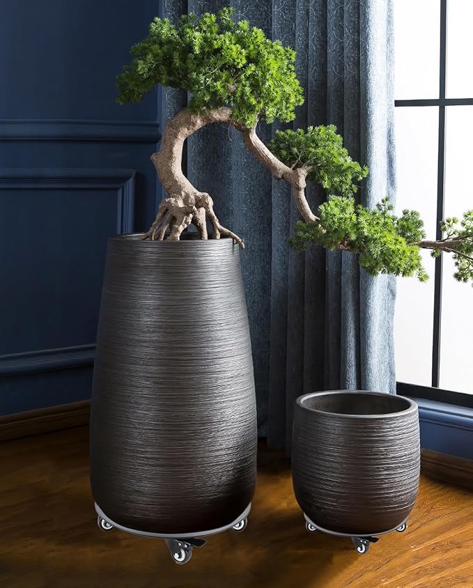 - 【OUTDOOR USE AS LANDSCAPE】This plant cart is made of thickened aluminum alloy and coated with black powder baking paint, enabling you to use it outdoors for long periods,It rolls smoothly on hardpan, concrete, deck, and even carpet, and the two symmetrical locking casters lock plant caddy in place.