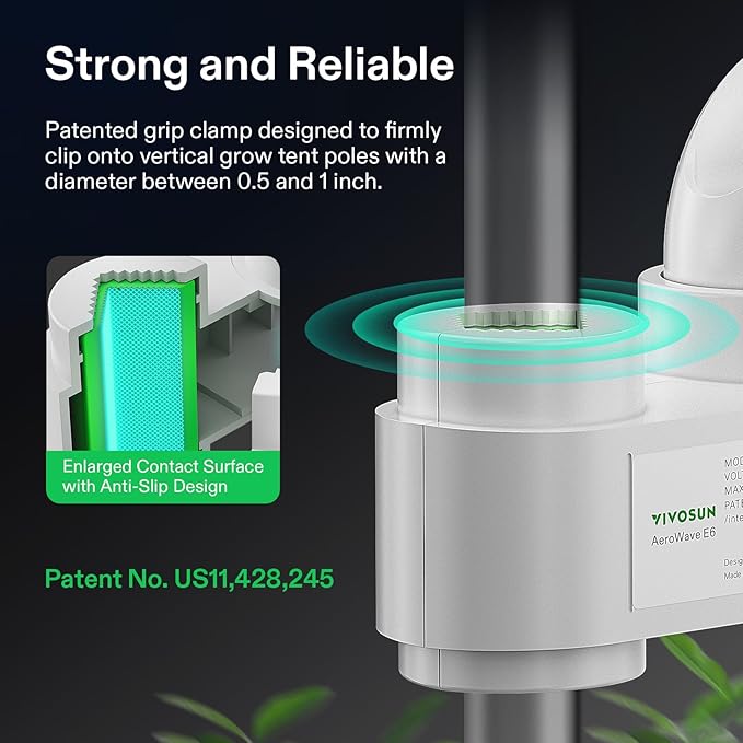 - Smart Wi-Fi Control: The AeroWave E6 is compatible with the Vivosun Grow Hub E42/E42A/E25, to remotely control speed and ON/OFF timer settings; You can connect this device to the SGS to have the device synch with your grow recipes and to operate in tandem with other smart devices