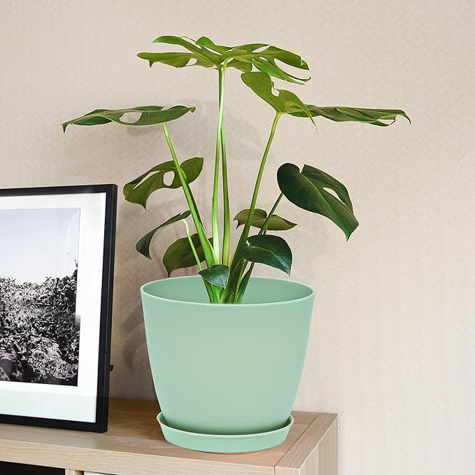 - [Modern Matte Exterior Finish Easy to Clean] These plastic plant pots are made by PP materials. Modern matte exterior finish are very elegant and can be used for vinyl printing. These pots are easy to clean and get clean of dirty easily on the outside, it's not a stained looking mess. The color and shape of plant’s foliage is highlighted by the minimalist round pot, that will pay more attention to the plants and flowers. It doesn't distract from what's inside.