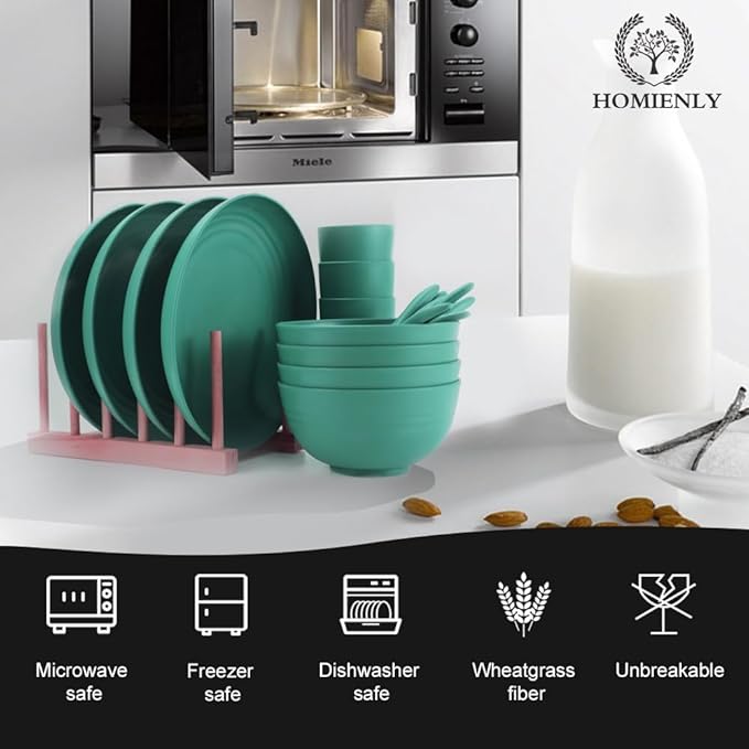 - PREMIUM MATERIALS, HEALTHY LIVING: Enjoy our premium wheat straw dish set, crafted from the high quality materials for a safe, non-toxic, and odorless dining experience. Free from harmful substances.These dinnerware set ensure your and your family's safety without compromising quality.