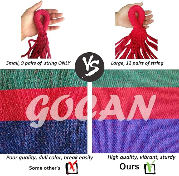 - 【2】High Quality: This brazilian hammock is made of high density cotton, cotton hammock can be soft, breathable and skin-friendly. Not only comfortable, sturdy and durable, but also last long.