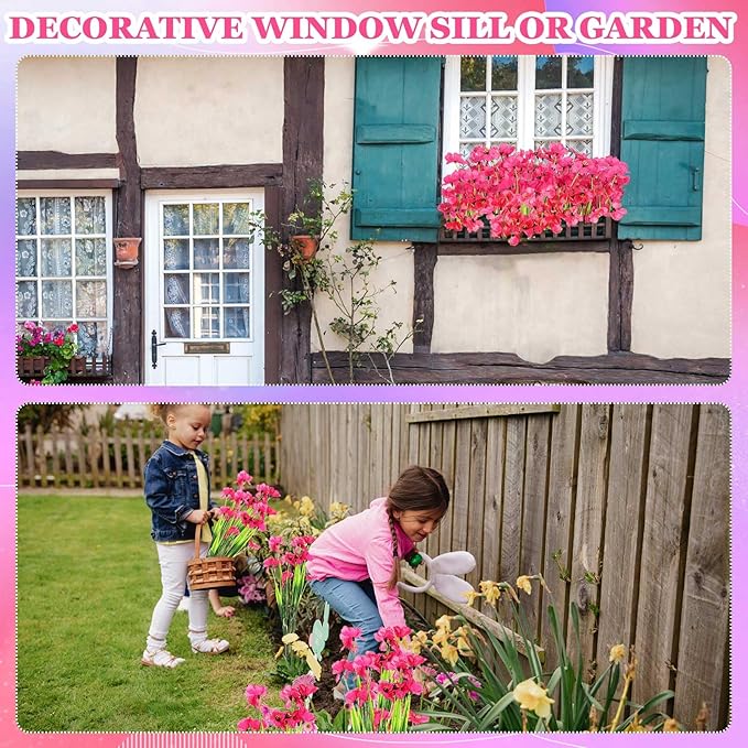 - Realistic Look: each plastic flowers in the bundle gives the appearance of a real, looks lifelike and has a realistic touch, UV resistant to avoid fading, suitable for both indoor and outdoor decoration, no need for watering and maintenance, would not die off and easy to take care of, always keep fresh
