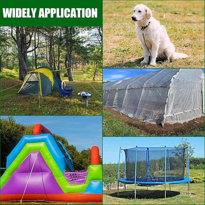 - Wide Application: trampoline tie down anchor kits are suitable for a wide variety of applications such as trampolines, temporary shelters, swing sets, camping tents, slides, canopies, trees, fences, car ports, sheds, fence posts, pet houses and more