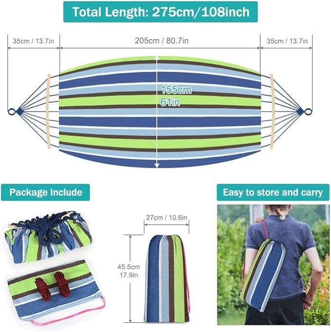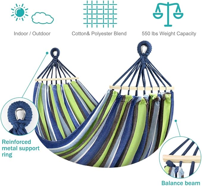 - 【Versatile Outdoor Hammock】Whether you want to set it up in your backyard, garden, poolside, or take it to the beach, this hammock for outside is perfect for various outdoor relaxation and leisure moments. Please note that the stand is not included.