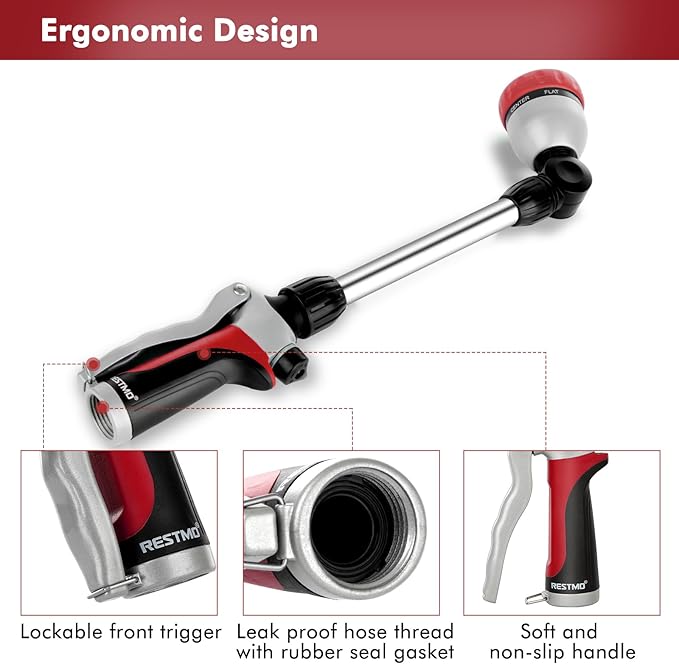 - ERGONOMIC DESIGN – Coated with the soft TPU and non-slip grip, this light-weight hose wand adds comfort and avoids hand fatigue. The pistol grip front trigger is easy to hold and can be locked anytime.