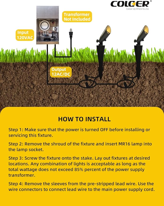 - Replaceable Bulb: The COLOER mini landscape spotlight uses a design with separate light fixture and bulb, which offers a longer lifespan compared to the non-detachable integrated design. You can replace the bulb without having to replace the entire fixture just because the bulb is broken. COLOER landscape lighting offers a lifetime warranty on the light fixture(painted finish is 10 years) and a 5 years for the LED bulb.