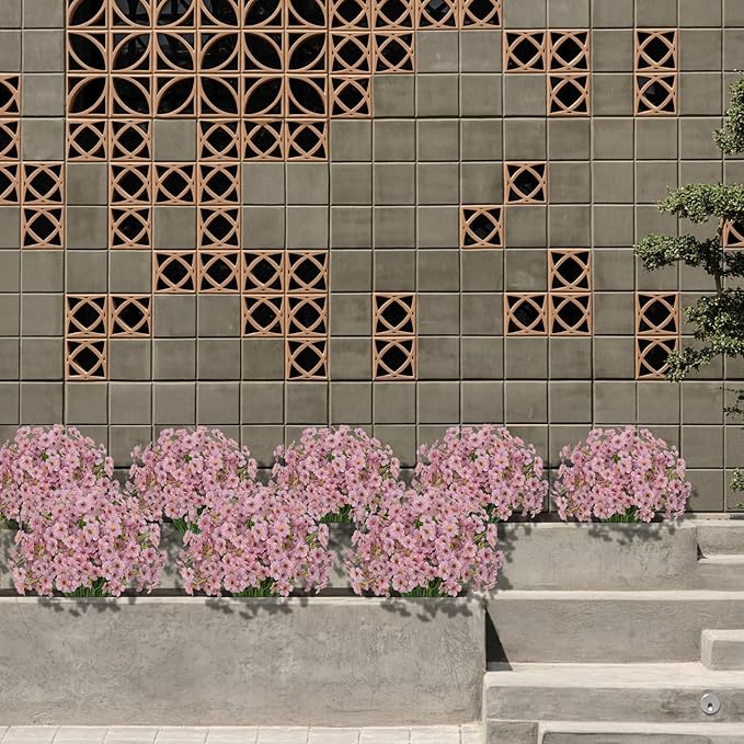 15 Bundles Artificial Flowers Outdoor UV Resistant Fake Silk Plants Plastic Faux Shrubs Outside Front Porch Window Box Garden Home Hanging Planter Decoration (Pink)