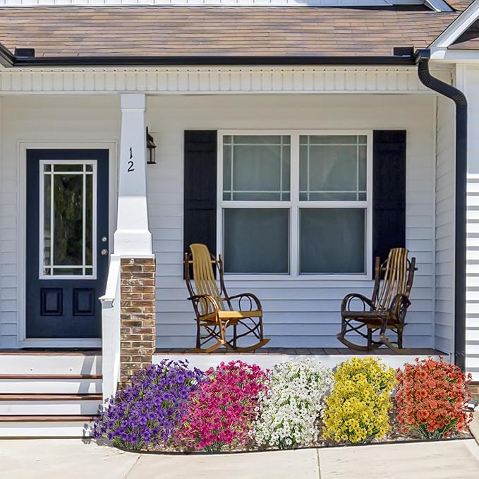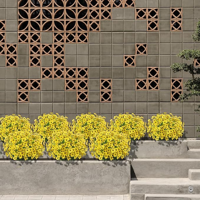 15 Bundles Artificial Flowers Outdoor UV Resistant Fake Silk Plants Plastic Faux Shrubs Outside Front Porch Window Box Garden Home Hanging Planter Decoration (Yellow)