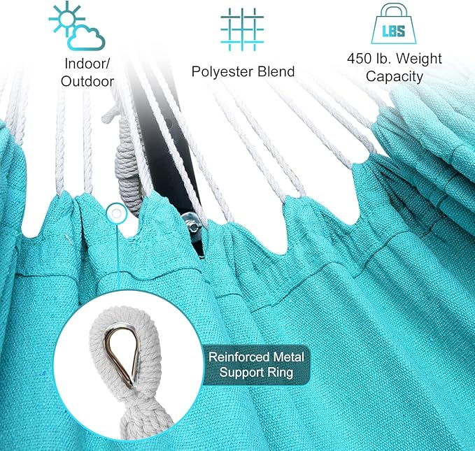 SZHLUX Double Hammock with Stand Included 450lb Capacity Steel Stand, Premium Carry Bag Included.Indoor Outdoor Brazilian-Style Cotton Bed for Backyard, Camping,Garden