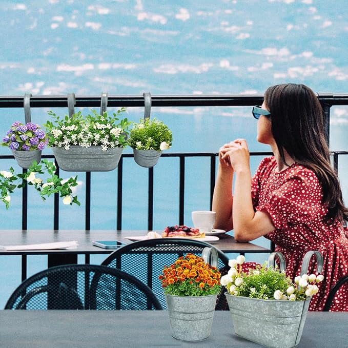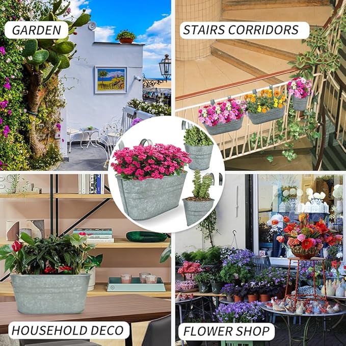 - 【Widely Used】The hanging railing planters not only suitable for flowers, herbs, succulents, plants, but also can be used as a storage bucket for cosmetics, kitchen supplies, etc. Nice gift for friends or family.