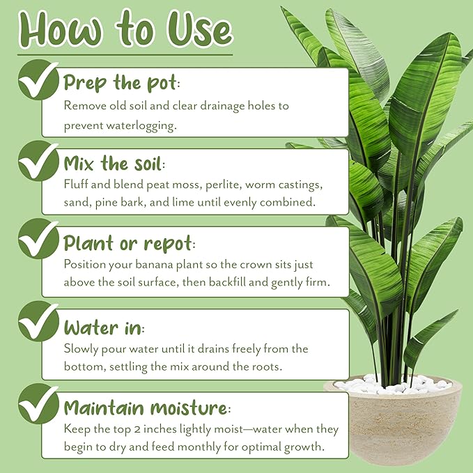 Banana Tree Potting Soil Mix (12 Quarts) – Hand-Blended Indoor/Outdoor Mix for Healthy Banana Plants – Enhances Drainage & Root Support – Made in USA