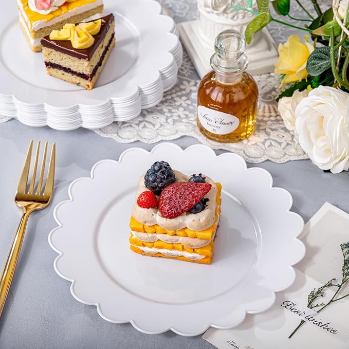 - WIDELY OCCASIONS:Our exquisite wedding dessert plates are definitely the way to go. Disposable plastic dessert plates are suitable for all occasions, such as weddings, anniversaries, engagement ceremonies, proms, business receptions and more.