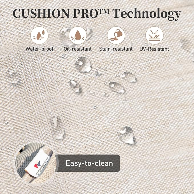 - ADVANCED CUSHION FABRIC TECH: Experience the happiness of easy maintenance with the SUNSHINE VALLEY patio conversation set. The fabric of this patio furniture set is made with CUSHION PRO technology. It has excellent waterproof, oil-proof, and stain-resistant properties making the dirt easily wiped down. It can really meet your outdoor leisure needs