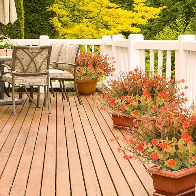 - UV Resistant: Plastic autumn flowers are uv resistant and never fade, can be put outside,front porch, back deck, garden, veranda, balcony ,reservation where the hot weather kills much fresh flowers, keep the forever-in-bloom wherever you choose to display them