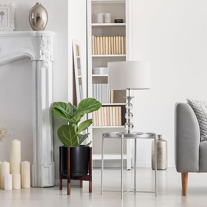 - A Complete Set: Mid-century ceramic planter, combined with a sculptural, solid wood stand that match perfectly together and looks great in anywhere.