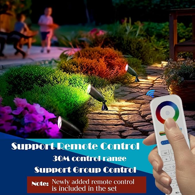 - Remote & Intelligent Control:Smart landscape lighting come with various control methods, with the Mi.light RF remote control ( included) sufficiently meeting your needs; once paired, you can effortlessly select from a range of RGB colors and adjustable white light, ideal for creating festive moods on special occasions like Christmas or Halloween; additionally, enjoy APP and voice control through the smart life or tuya smart app by using the 2.4GHz WL-Box2 hub ( not included).