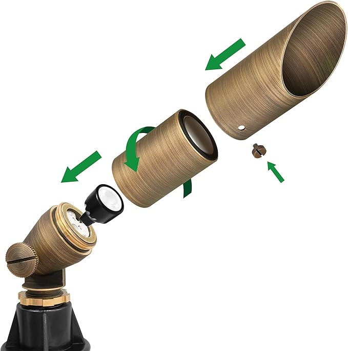- SOLID DIE-CAST BRASS CONSTRUCTION: This spotlight is built to last with solid brass material that resists corrosion and damage from extreme weather. It’s more durable and reliable than plastic or aluminum fixtures. It is a more worthwhile investment for long-term consideration.
