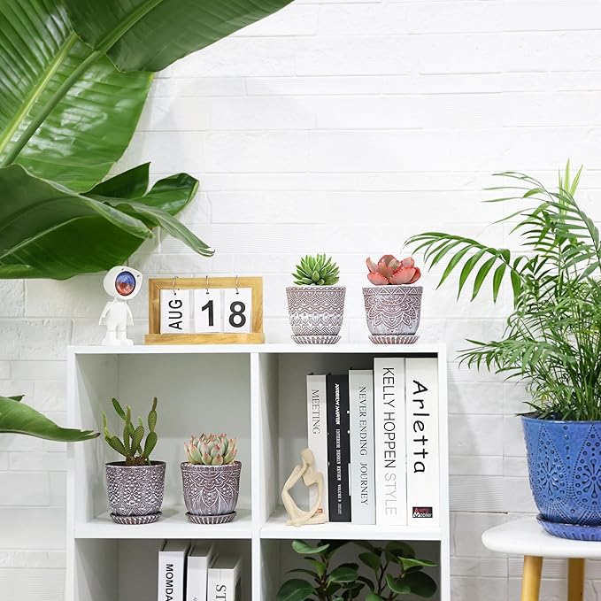 Gepege Succulent Pots, 4 Inch Small Indoor Ceramic Planter Pot with Drainage Holes and Saucers for Plants - Set of 4