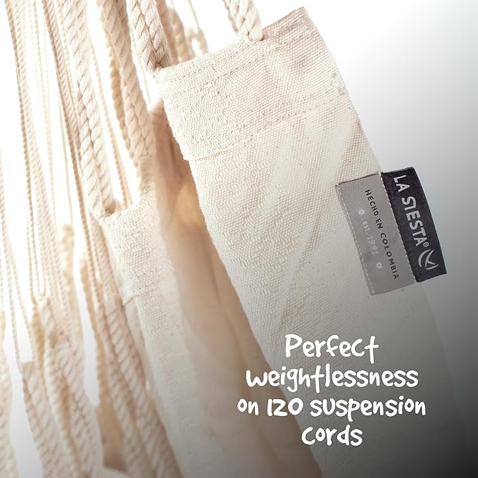 LA SIESTA - XL King Habana Cotton Hammock & Romano Steel Stand - Indoor Outdoor Hanging Chair Swing for Bedroom Porch Balcony - Boho Hanging Chair - Latte
