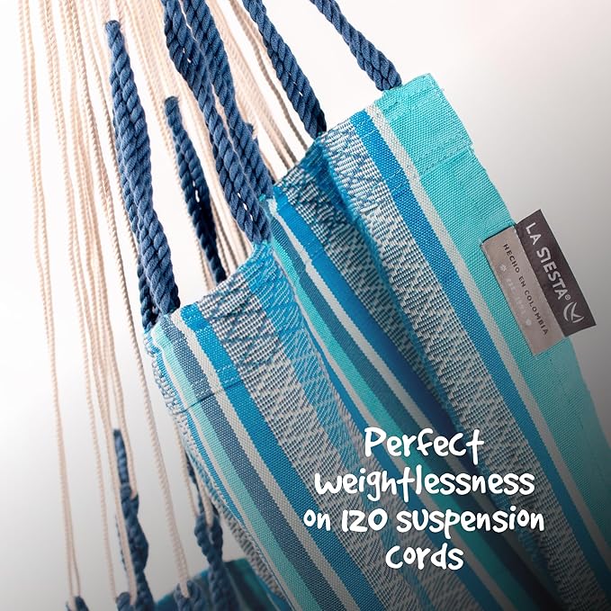 LA SIESTA® - XL King Habana Cotton Hammock & Romano Steel Stand - Indoor Outdoor Hanging Chair Swing for Bedroom Porch Balcony - Boho Hanging Chair - Azure