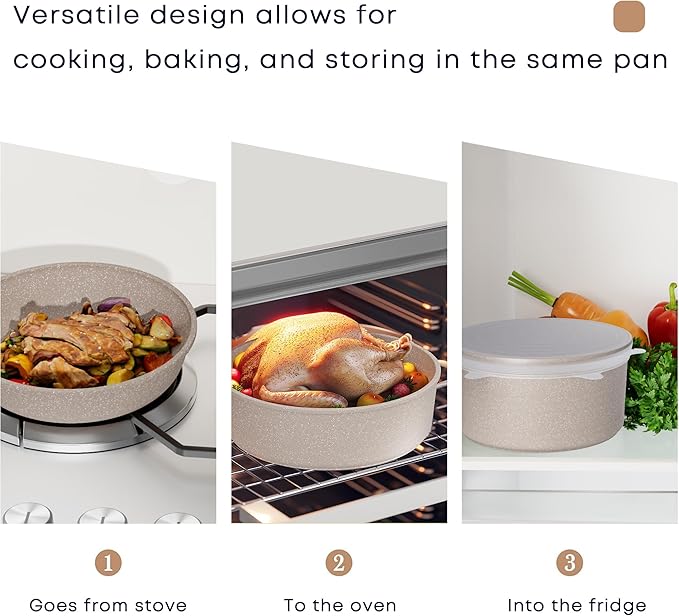 - Ultimate versatility: It features a detachable handle, enabling you to move it from the stove to the oven and then into the fridge. It can be easily placed in the trunk of the car. This cookware is suitable for use in the kitchen, during camping trips, and while traveling.