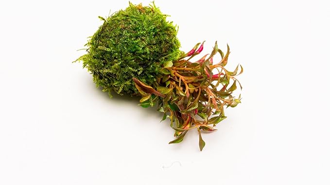SubstrateSource Live Plants on Driftwood, Lava Rock, Moss, Fiber Mat - Wabi Kusa - Easy, Beginner Friendly (Alternanthera Bettzickiana Red on Clay Moss Ball)