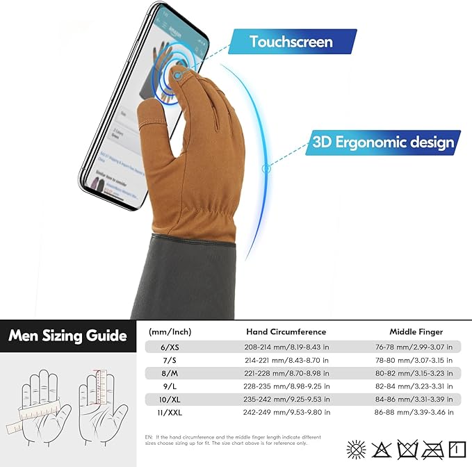 Vgo... Winter Warm Safety Work Gloves Men, Extended Pig Split Leather Cuff,Synthetic Leather, Rose Pruning Thorn Proof,Gardening(Size XL,Brown,SL6592FLWP)