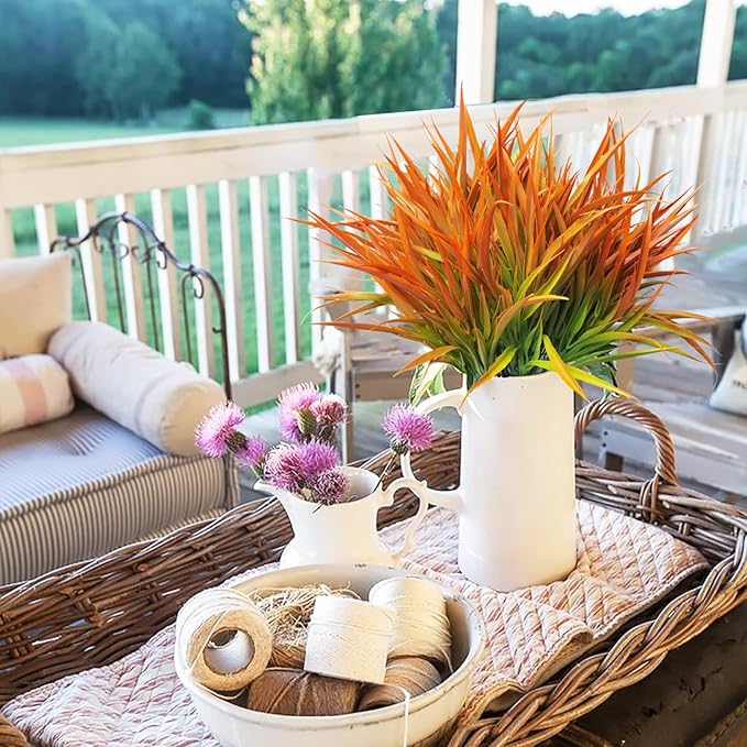 - [Packaging and dimensions]: Each package consists of 8 tall fake grass plant, each with a height of approximately 17.5 inches, each consisting of 75 leaves of varying sizes. The entire package consists of a total of 800 leaves. The leaves are lush and very fluffy, Only 4 fake greenery stems are needed to fill a 3-inch vase