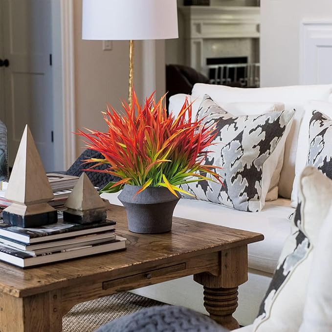 - [UV Resistant and Never Fade]: Fake outdoor greenery grass plastic shrubs will not fade because of the fall rain or summer sunlight, can keep bright and beautiful colors for a long time. No need for human care