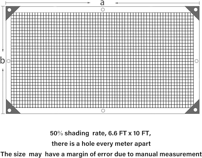 - 50% Shade Rate: Our Shade Cloth can resist rays and most sunlight while air can still flow through so as to create a comfortable cool and shaded place for people or plants. It blocks 50% of the sunshine and bring 50% the shadow, 50% of the sunshine can through it.