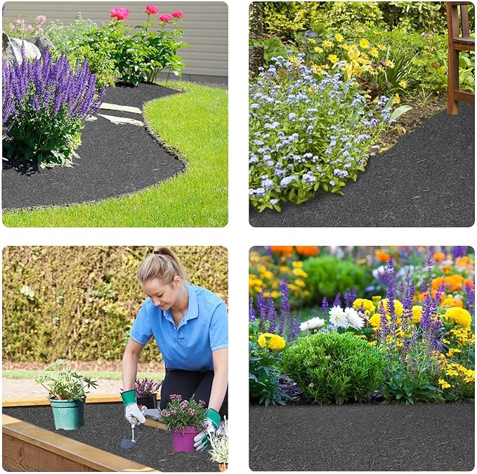 - Wide Application: Black rubber mulch roll creates a clean edge for flower beds, playgrounds, driveways, and more; And create pathways through your garden or backyard, or border your growing trees; Provide a effective and beautifully for yard