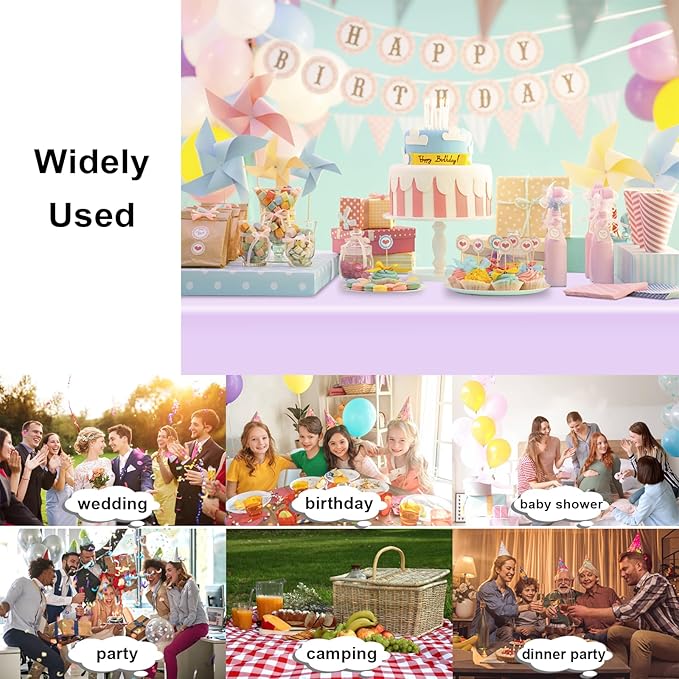 - 【Multiple Uses】Light purple plastic tablecloths can create a party atmosphere and are perfect for celebrations like birthday party. Suitable for indoor and outdoor use. Ideal for parties, banquets, birthdays, picnics, weddings, Valentine's Day decorations, Thanksgiving dinners, Christmas celebrations, Halloween, etc.