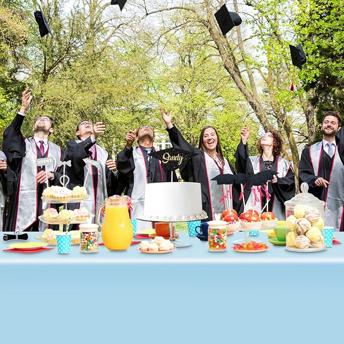 - 【Multiple Uses】Light blue plastic tablecloths can create a party atmosphere and are perfect for celebrations like birthday party. Suitable for indoor and outdoor use. Ideal for parties, banquets, birthdays, picnics, weddings, Valentine's Day decorations, Thanksgiving dinners, Christmas celebrations, Halloween, etc.
