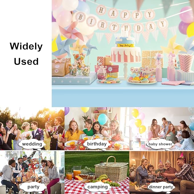 - 【Multiple Uses】Light blue plastic tablecloths can create a party atmosphere and are perfect for celebrations like birthday party. Suitable for indoor and outdoor use. Ideal for parties, banquets, birthdays, picnics, weddings, Valentine's Day decorations, Thanksgiving dinners, Christmas celebrations, Halloween, etc.