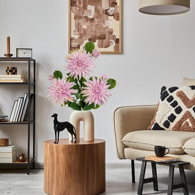 - 💐✨【Easy to care】Are you tired of dying flowers? Then our fake dahlia flowers will be perfect for you. Unlike fresh flowers used for flower arrangement which require everyday upkeep, the dahlias fake flower can be placed and reusable in many settings for a long period without any care. Green stems and leaves, bright flowers, let your room and life exude a strong breath of love and life. Bringing beauty and good mood to your day, they are a great addition to your spring displays!