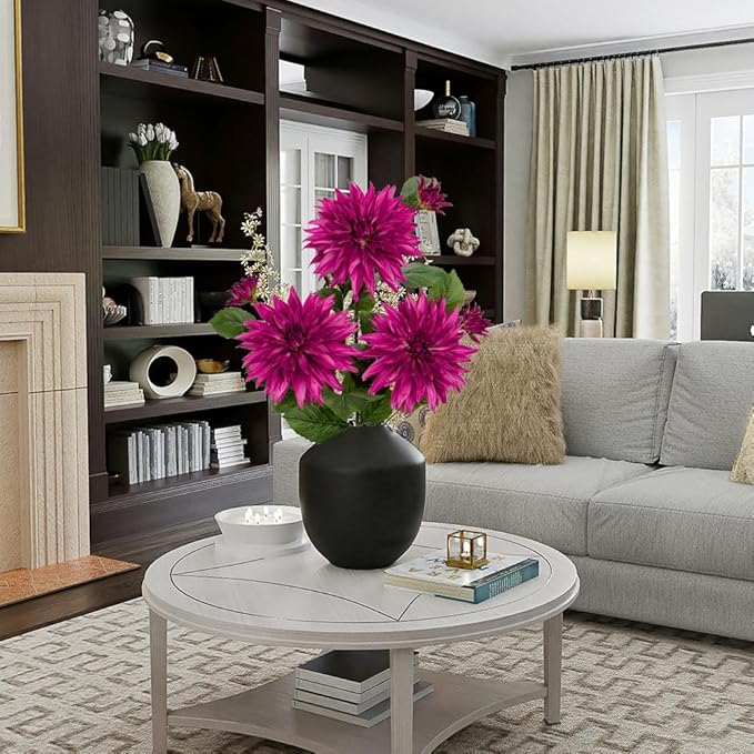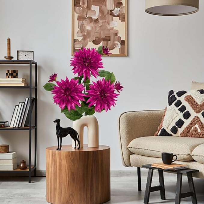 - 💐✨【Easy to care】Are you tired of dying flowers? Then our fake dahlia flowers will be perfect for you. Unlike fresh flowers used for flower arrangement which require everyday upkeep, the dahlias fake flower can be placed and reusable in many settings for a long period without any care. Green stems and leaves, bright flowers, let your room and life exude a strong breath of love and life. Bringing beauty and good mood to your day, they are a great addition to your spring displays!