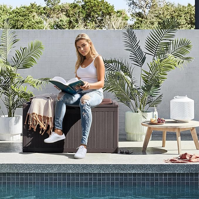 - [Wide Applications]Simple appearance with multi-purpose design, this storage box can easily integrate into your various indoor and outdoor scenarios like living room, balcony, porch, patio, deck or poolside. Store your tools or cushions