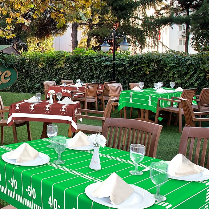 - 【Decorative Tablecloths】Turn any boring table into the centerpiece of your next party, family gathering or event venue with these gorgeous tablecloths. These disposable football party decoration tablecloths are an elegant and practical combination that creates a beautiful and enjoyable atmosphere for your family and friends.
