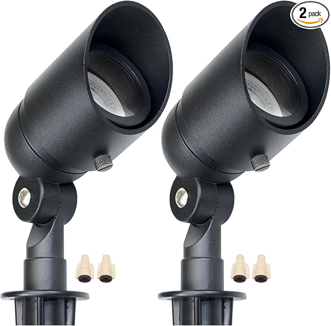 Lumina Lighting® 5W Landscape lighting 12V Landscape Lights Low Voltage Landscape Spotlights Warm White Waterproof Outdoor Replaceable LED Bulb for Garden, Lawn, Porch, Patio and Yard (Black) (2-Pack)