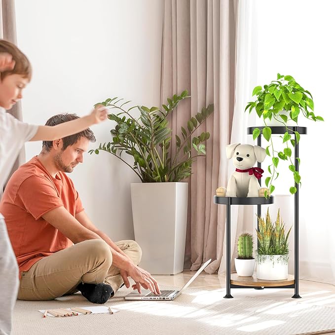 - Super Space Saving Corner Plant Stand: 3 Tier tall skinny metal plant stand features a asymmetrical tiers design, the minimalist structure can perfectly fit into the corner of your home, adds spice to an empty corner while saving space, allowing you to maximise use of space