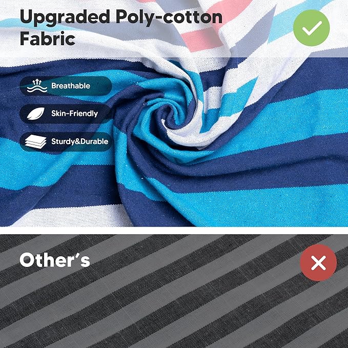 - Upgraded Fabric: Our Brazilian Camping hammock is made of eco-friendly thicker version poly-cotton fabric (no lint, no odor, not pilling, not fading, skin-friendly, and breathable), stronger and much more durable than ordinary fabric hammocks. A comfortable cocoon style hammock can keep you safe while enjoying the peaceful leisure time