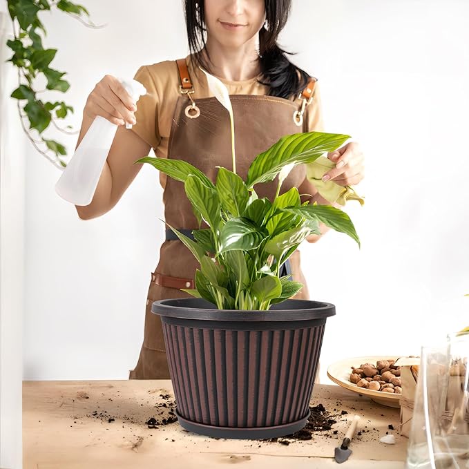 - 【MODERN STYLE PLANTERS】 Indoor planters with saucers provide a unique,nice style in ribbed design which gives an understated elegance that will enhance the beauty of your plant. These 10 inch plant pots are available in red-brown &blue-green & gold finished with a black antique stain. Plastic flower pots would be a beautiful addition to anyone’s deck or sunroom or house! for indoor and outdoor . With better breathabiity and water absorption, it’s beneficial to the healthy growth of plants